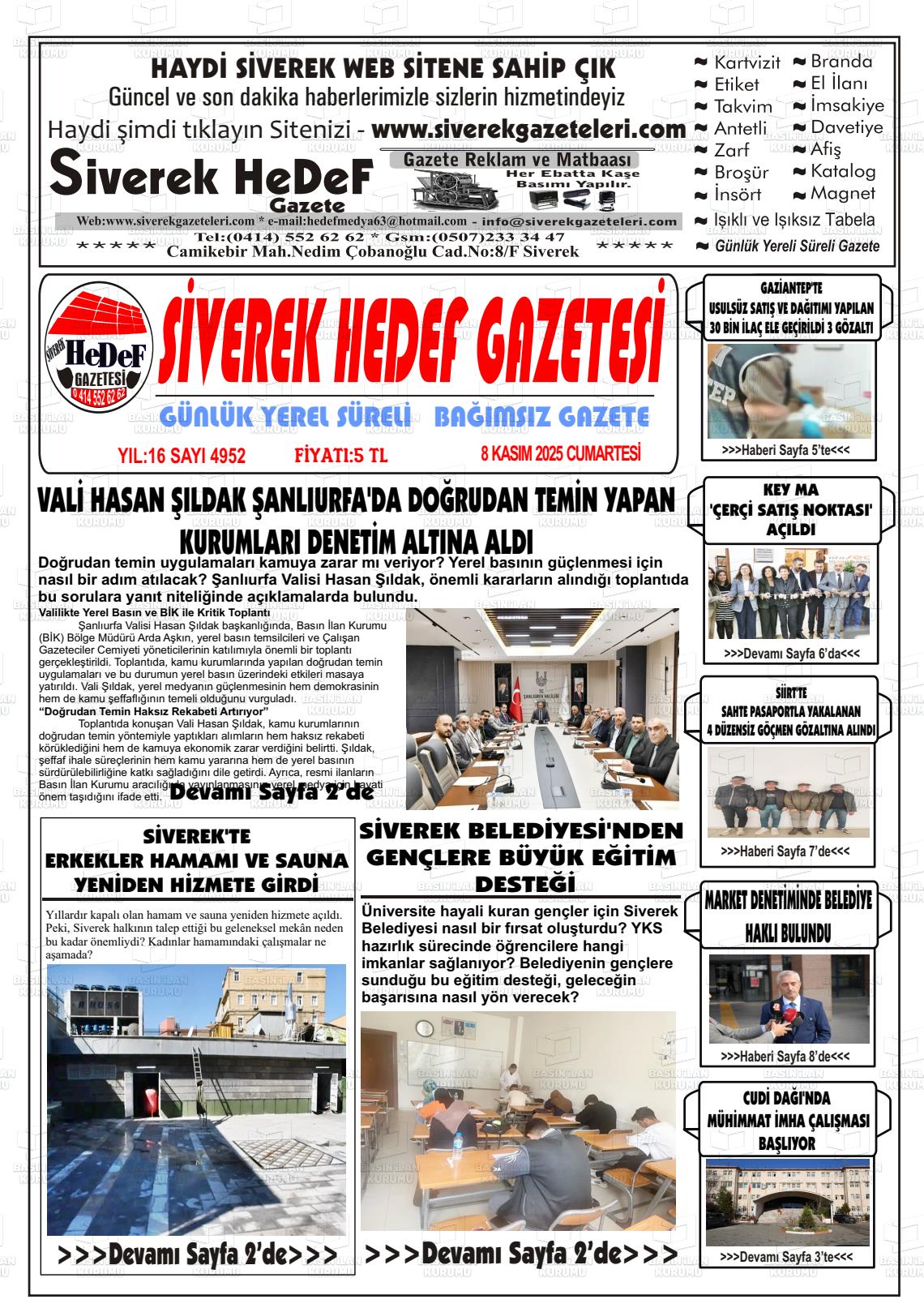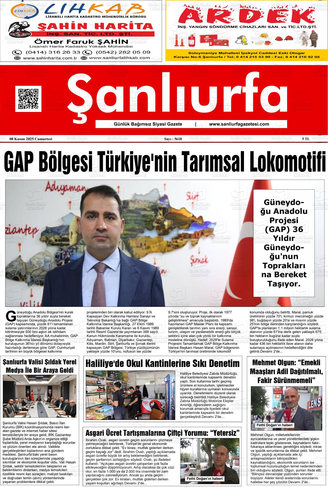 Şanlıurfa Yerel Gazeteleri 27 Aralık 2025, Cumartesi Günü Manşeti