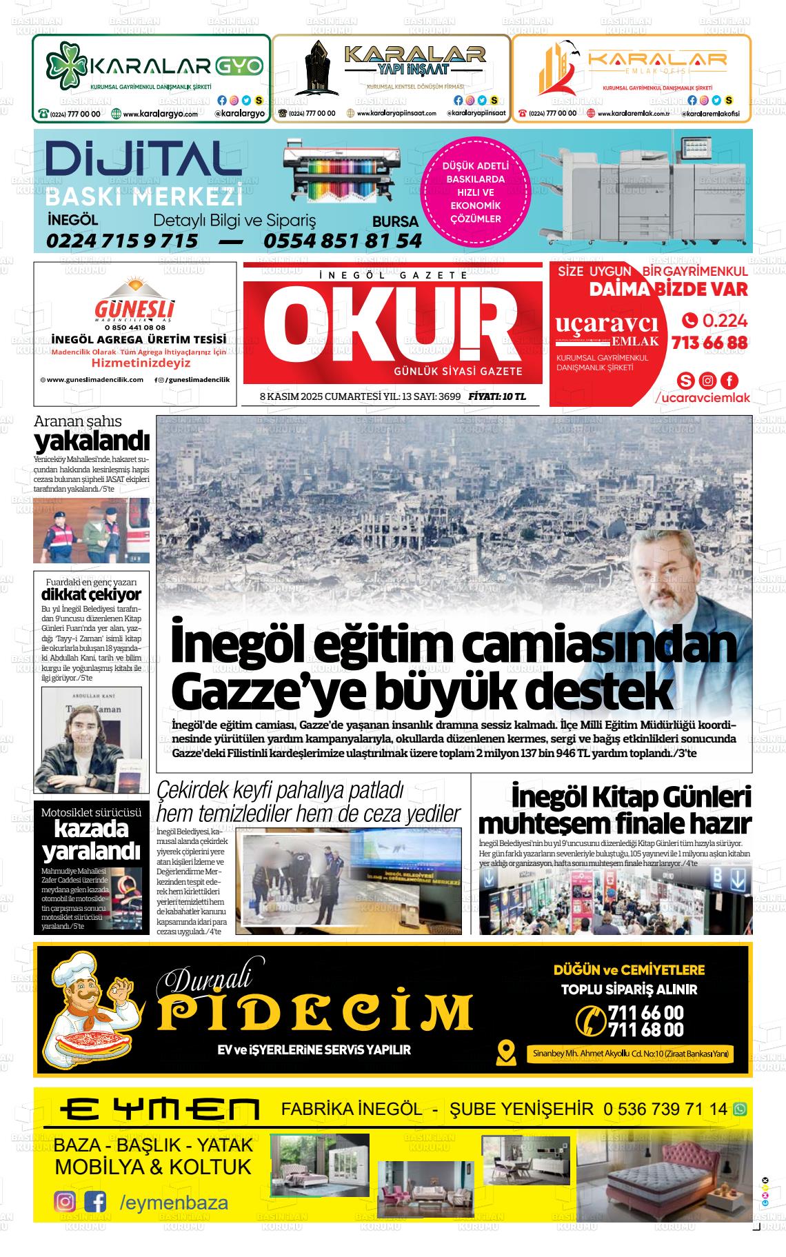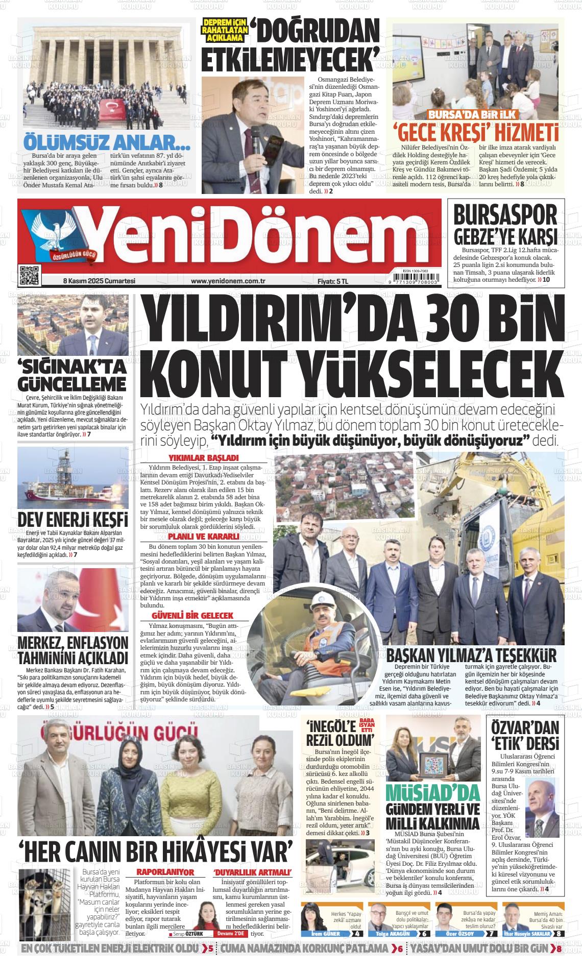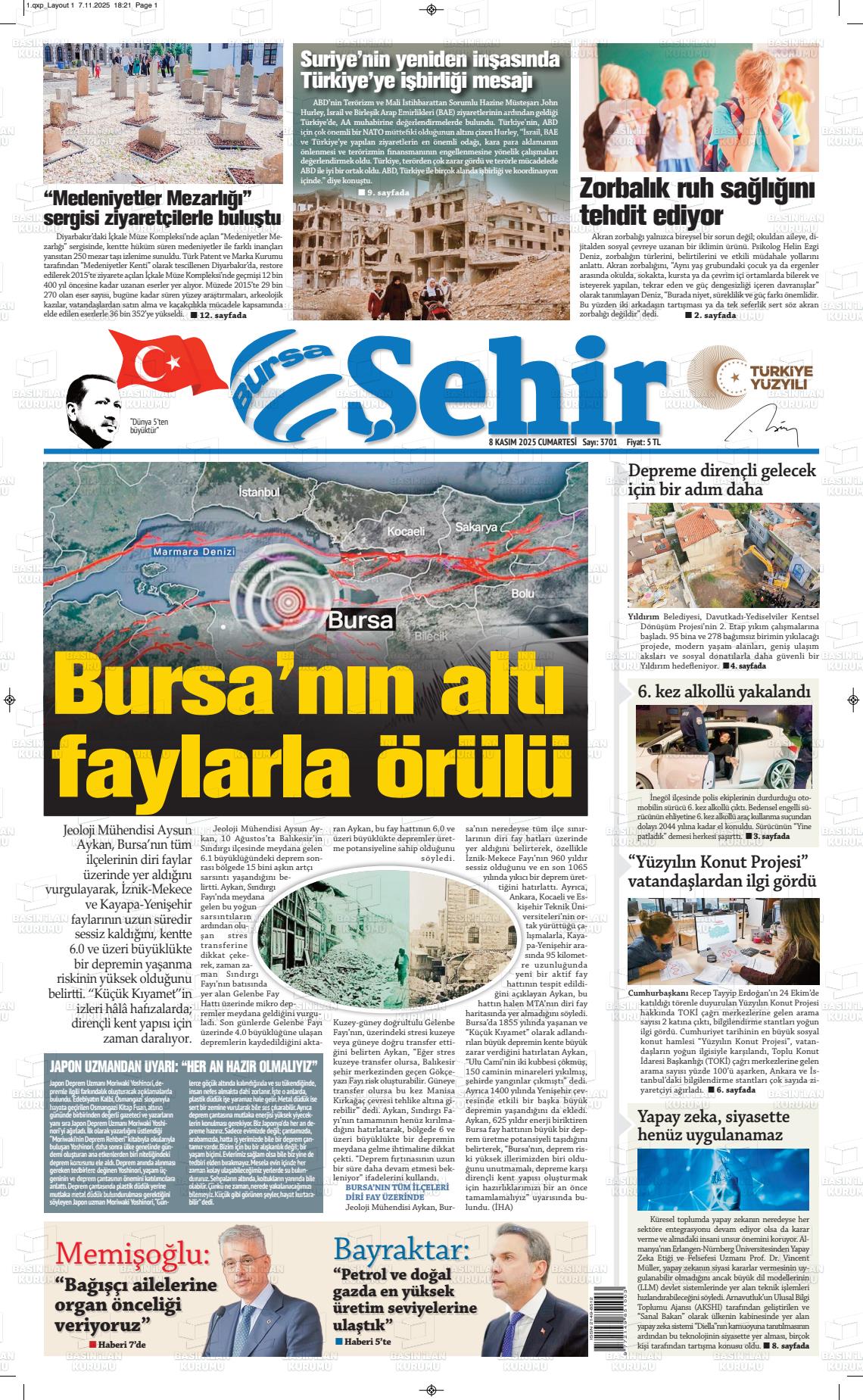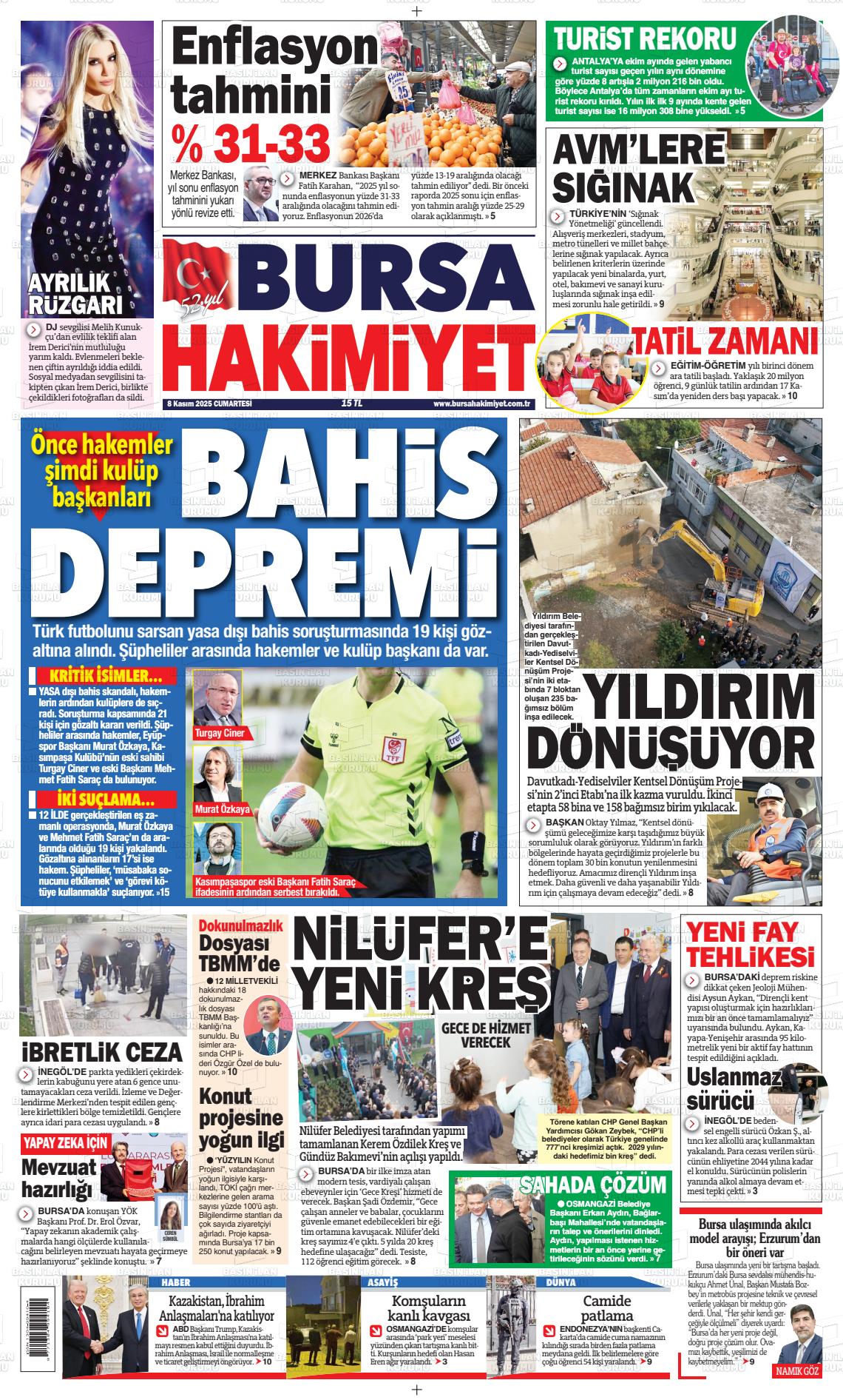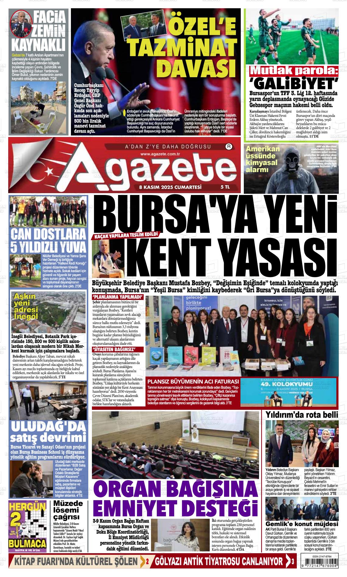 Bursa Yerel Gazeteleri 26 Aralık 2025, Cuma Günü Manşeti