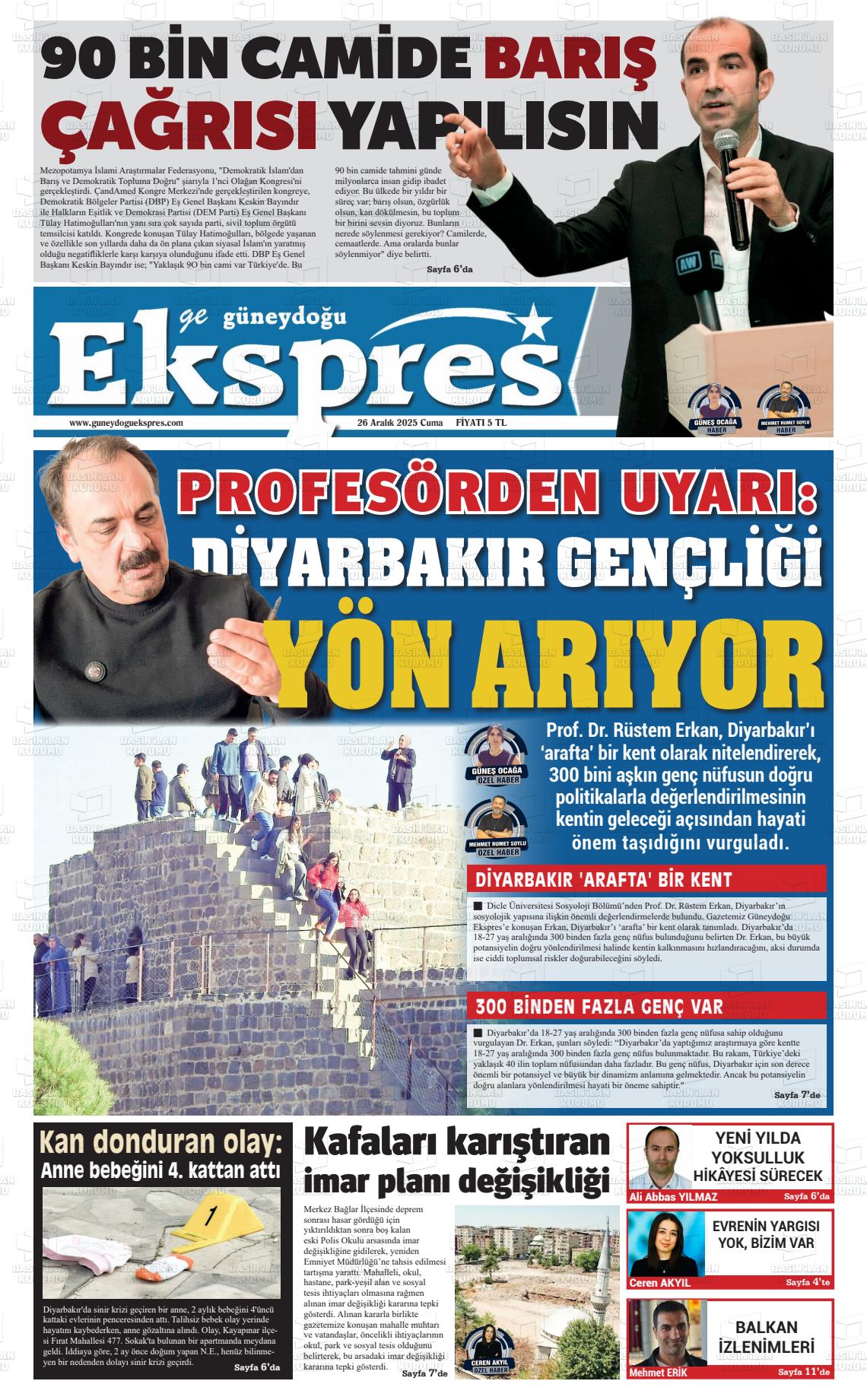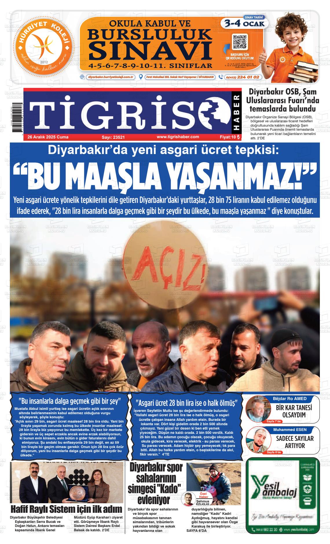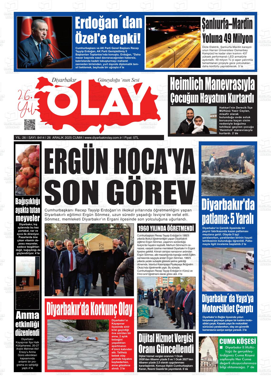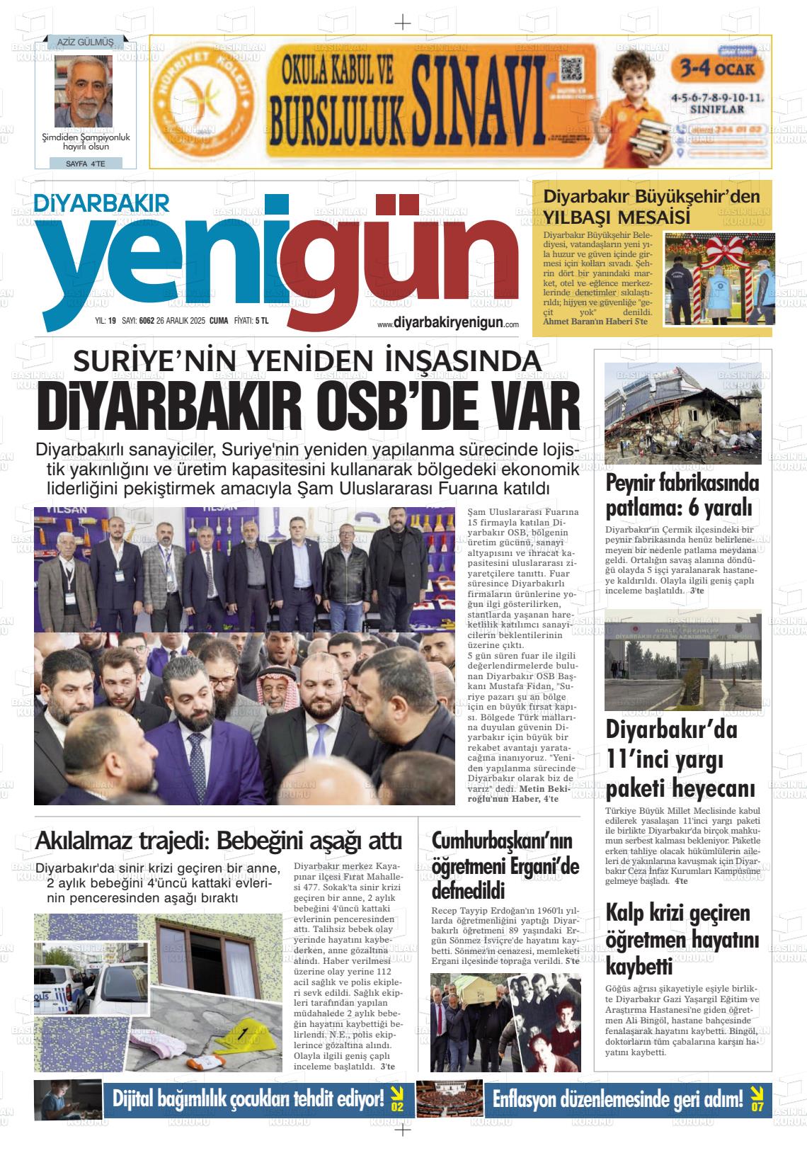 Dİyarbakır Yerel Gazeteleri 27 Aralık 2025, Cumartesi Günü Manşeti