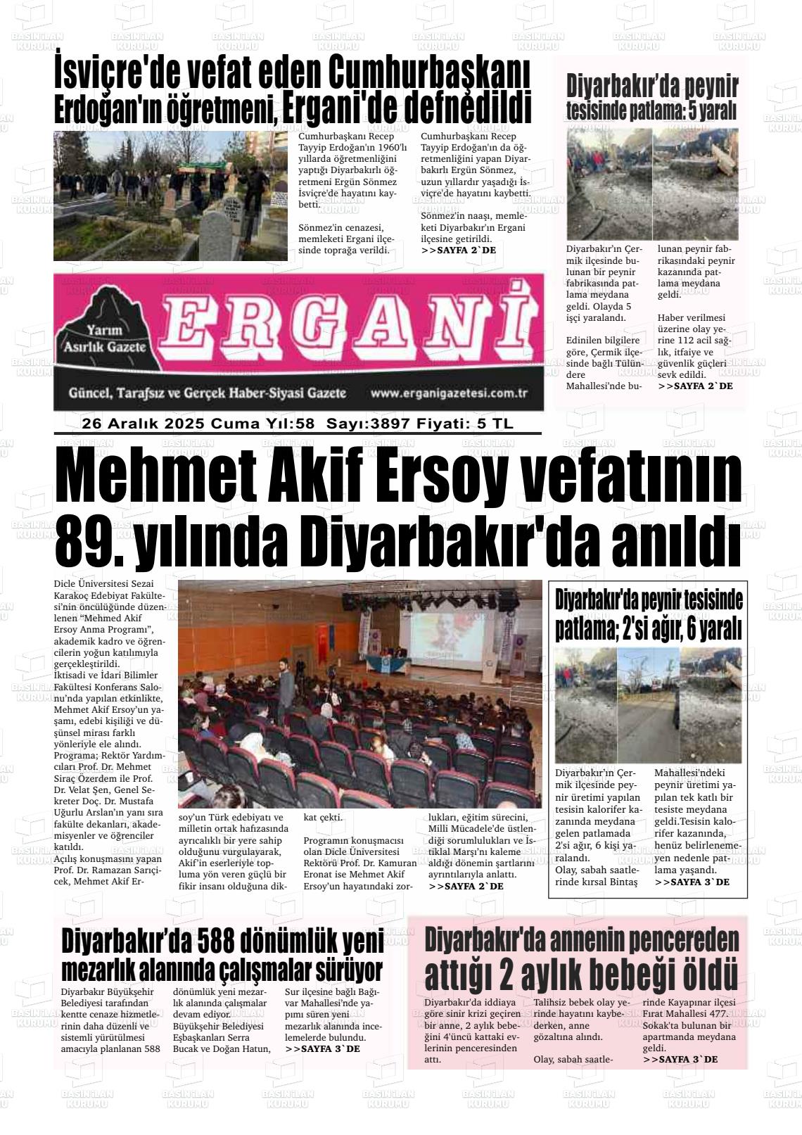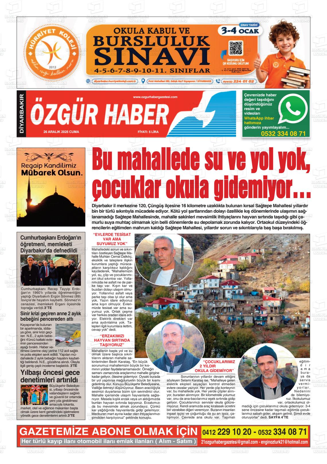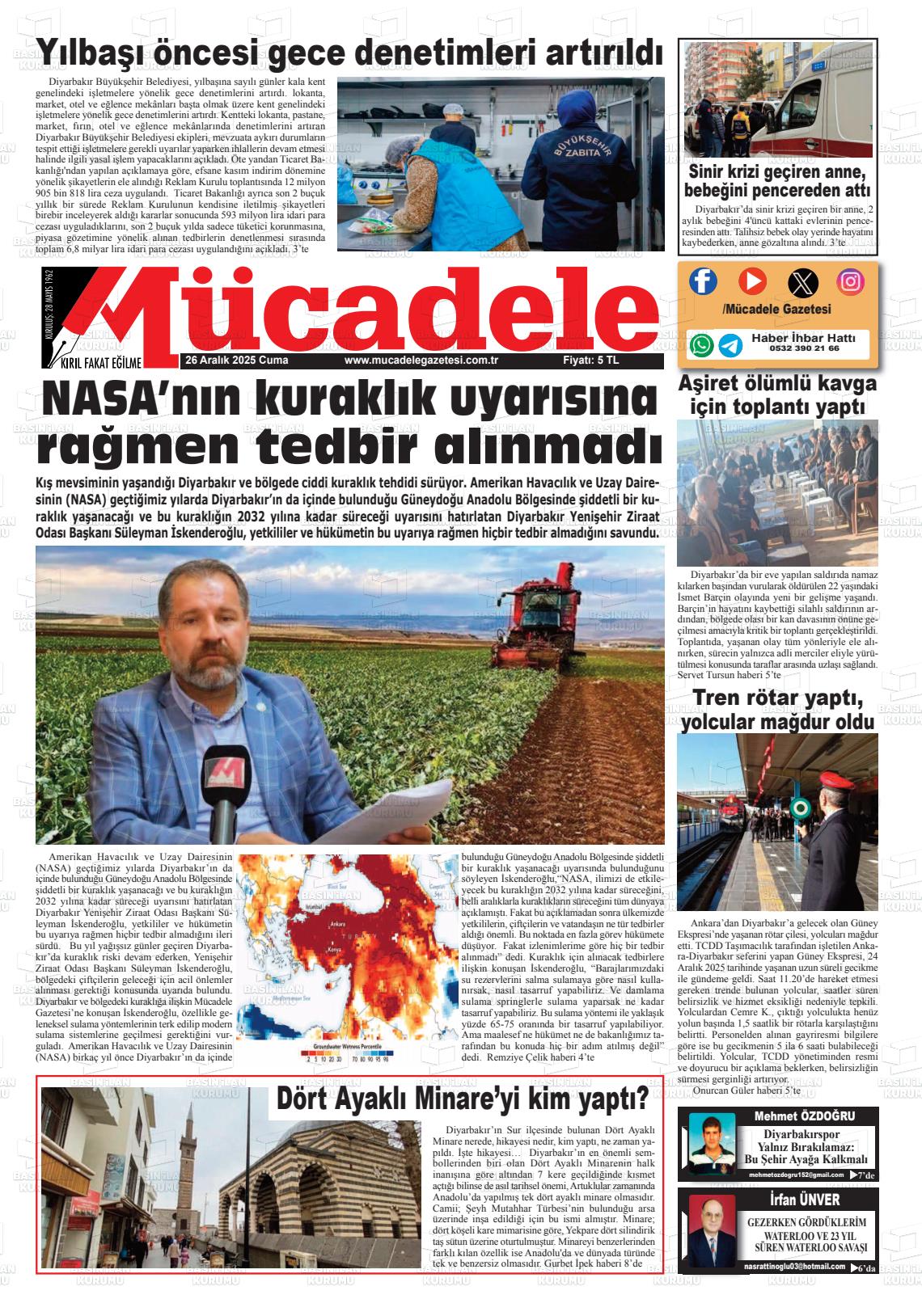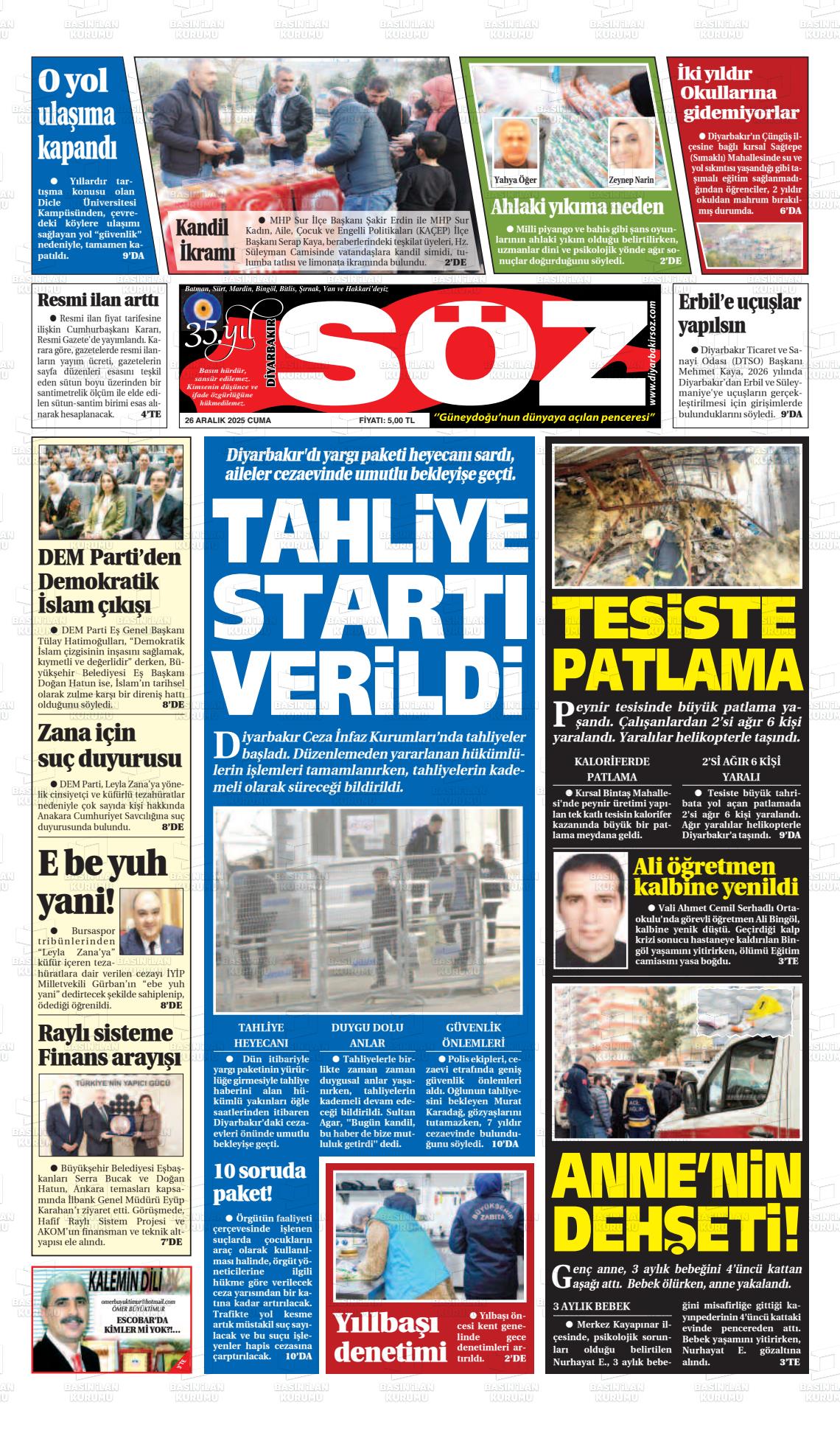 Dİyarbakır Yerel Gazeteleri 27 Aralık 2025, Cumartesi Günü Manşeti