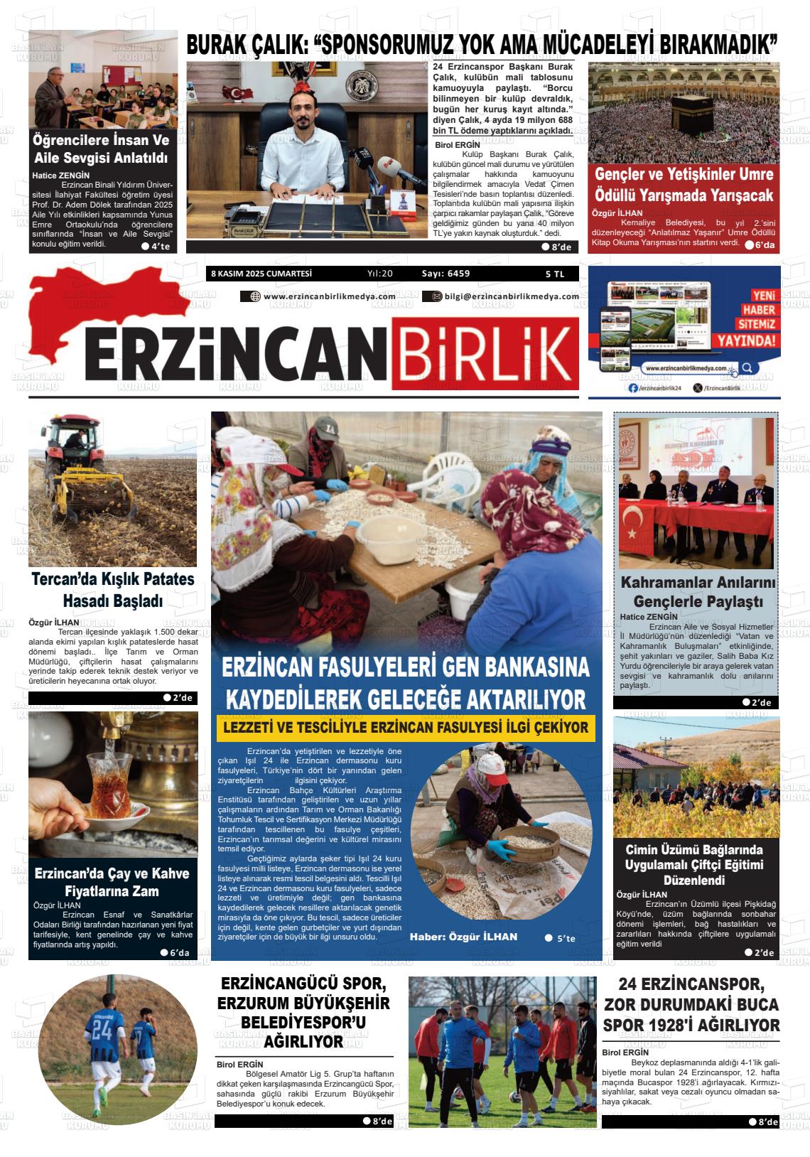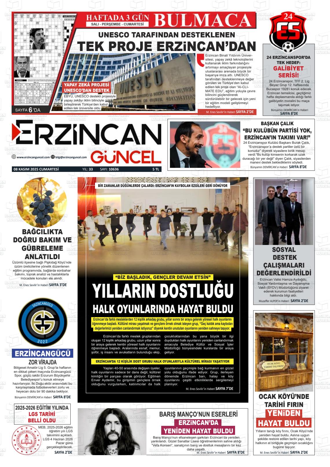 Erzİncan Yerel Gazeteleri 27 Aralık 2025, Cumartesi Günü Manşeti