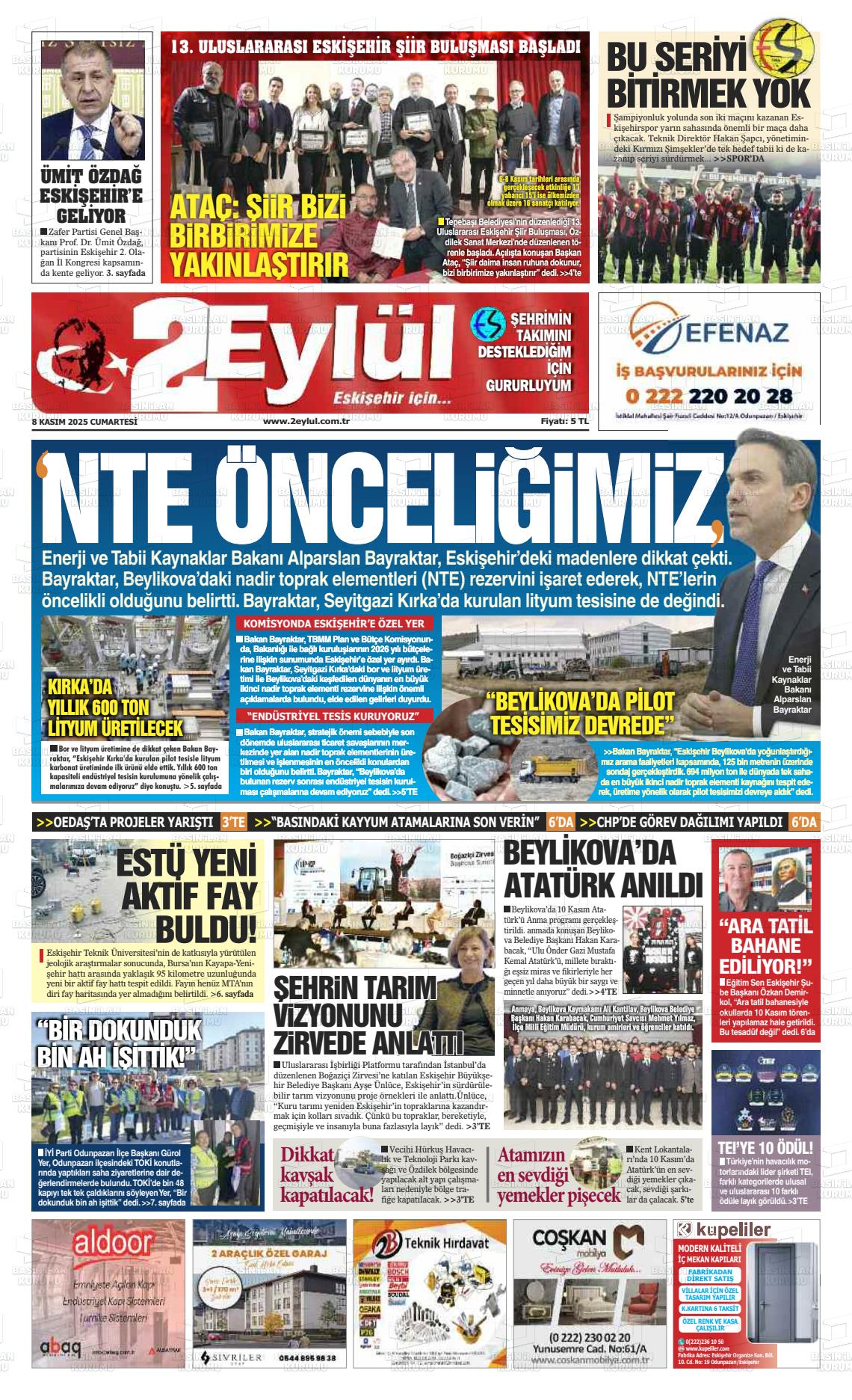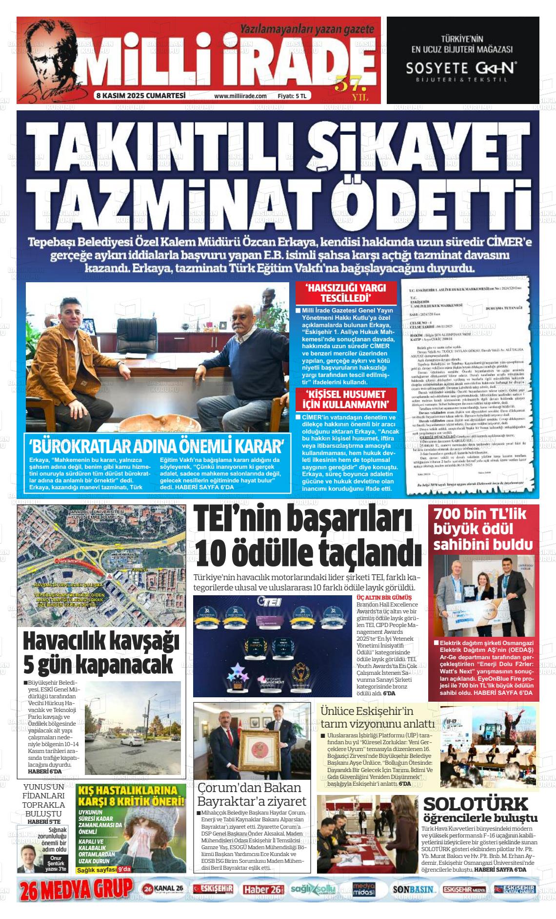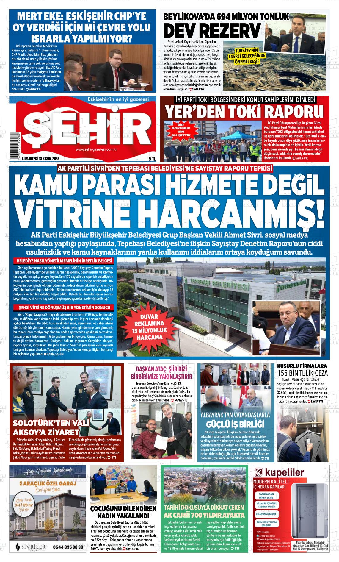 Eskİşehİr Yerel Gazeteleri 28 Aralık 2025, Pazar Günü Manşeti
