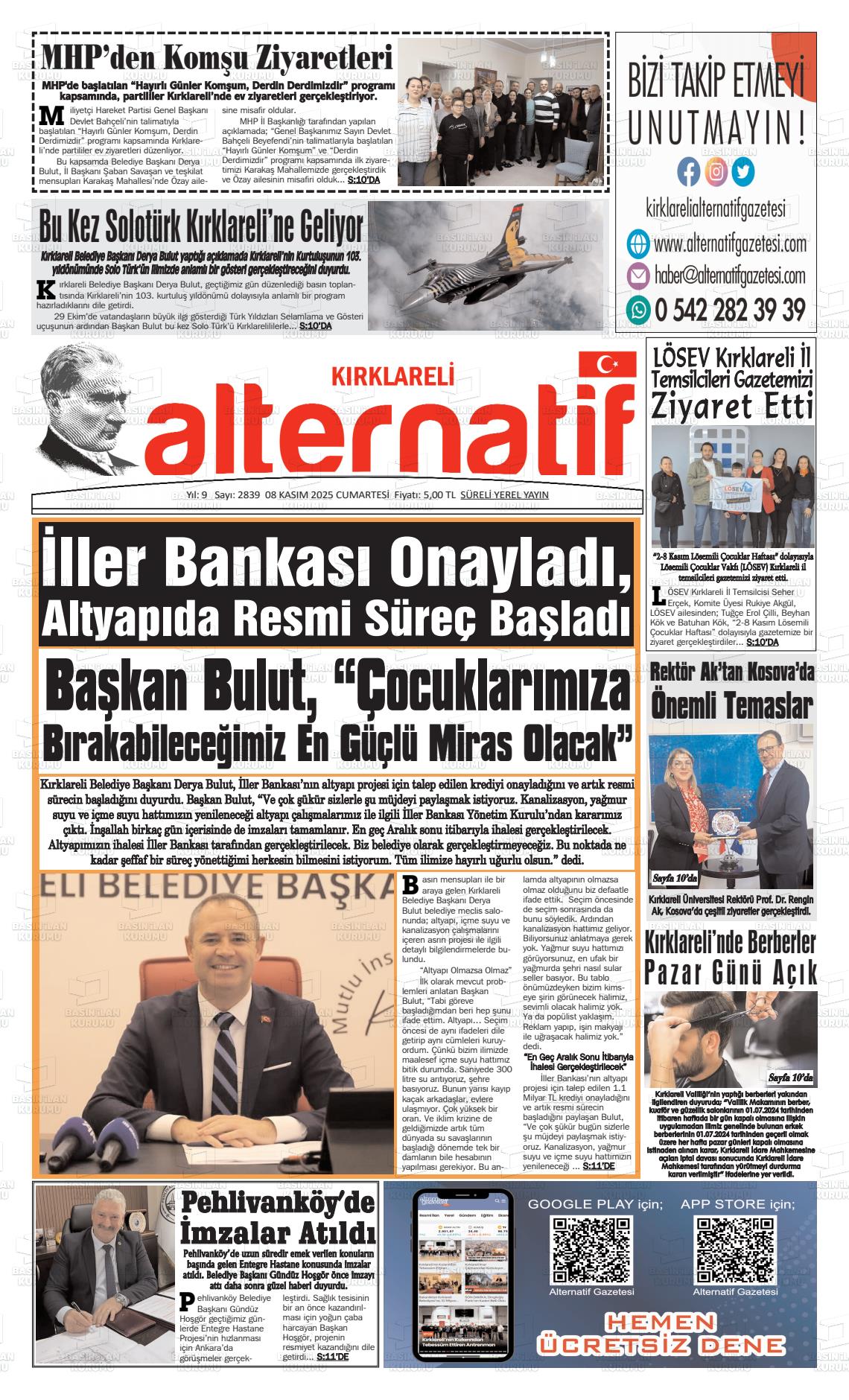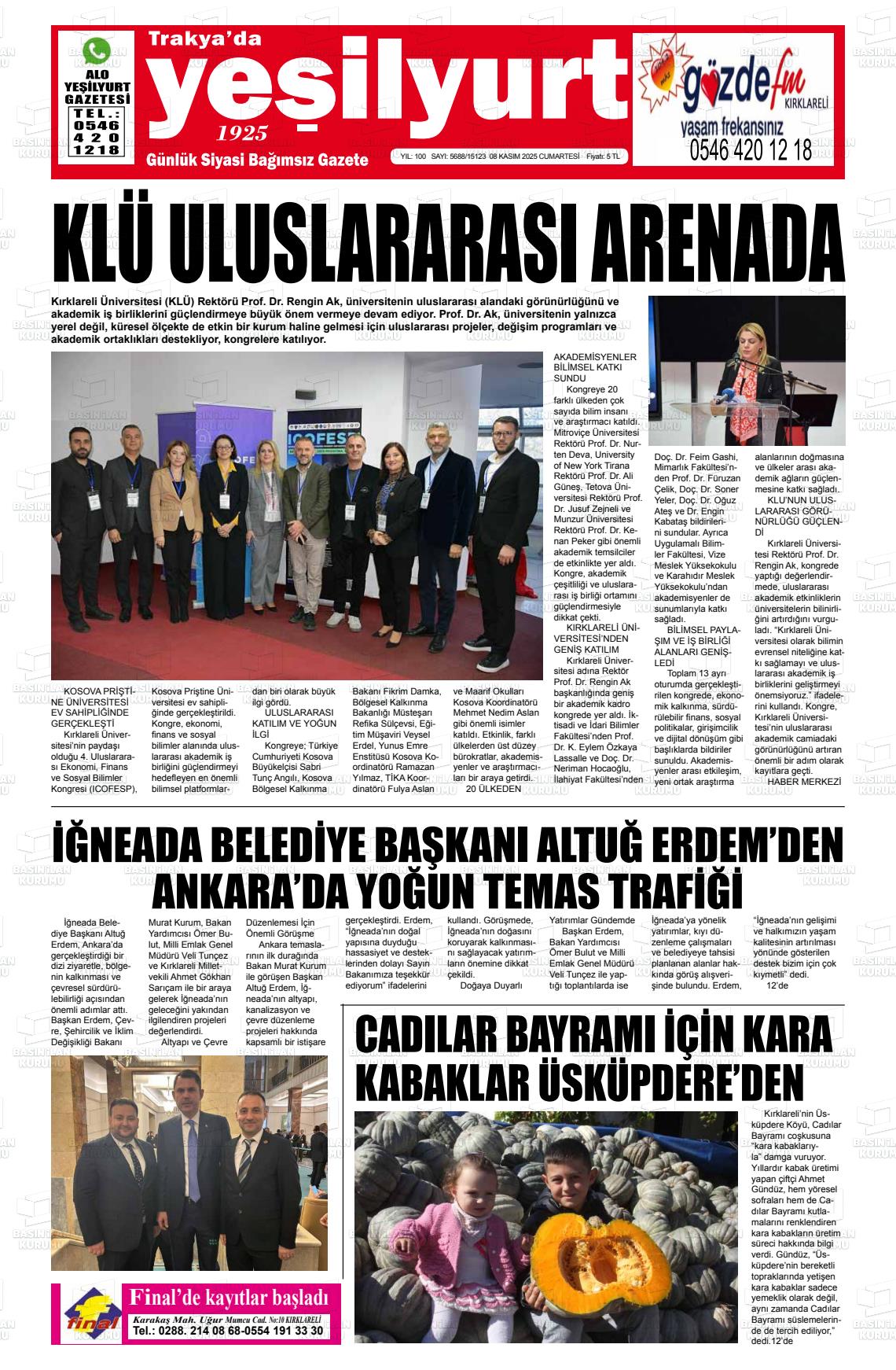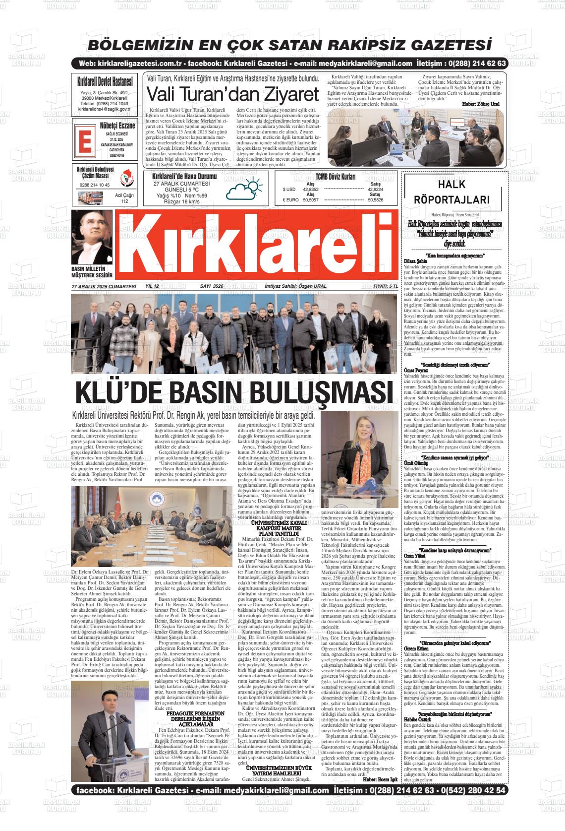 Kırklarelİ Yerel Gazeteleri 27 Aralık 2025, Cumartesi Günü Manşeti