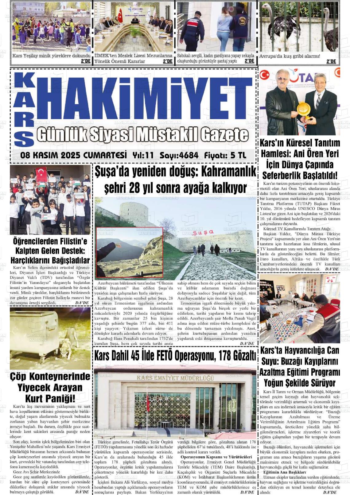 Kars Yerel Gazeteleri 27 Aralık 2025, Cumartesi Günü Manşeti