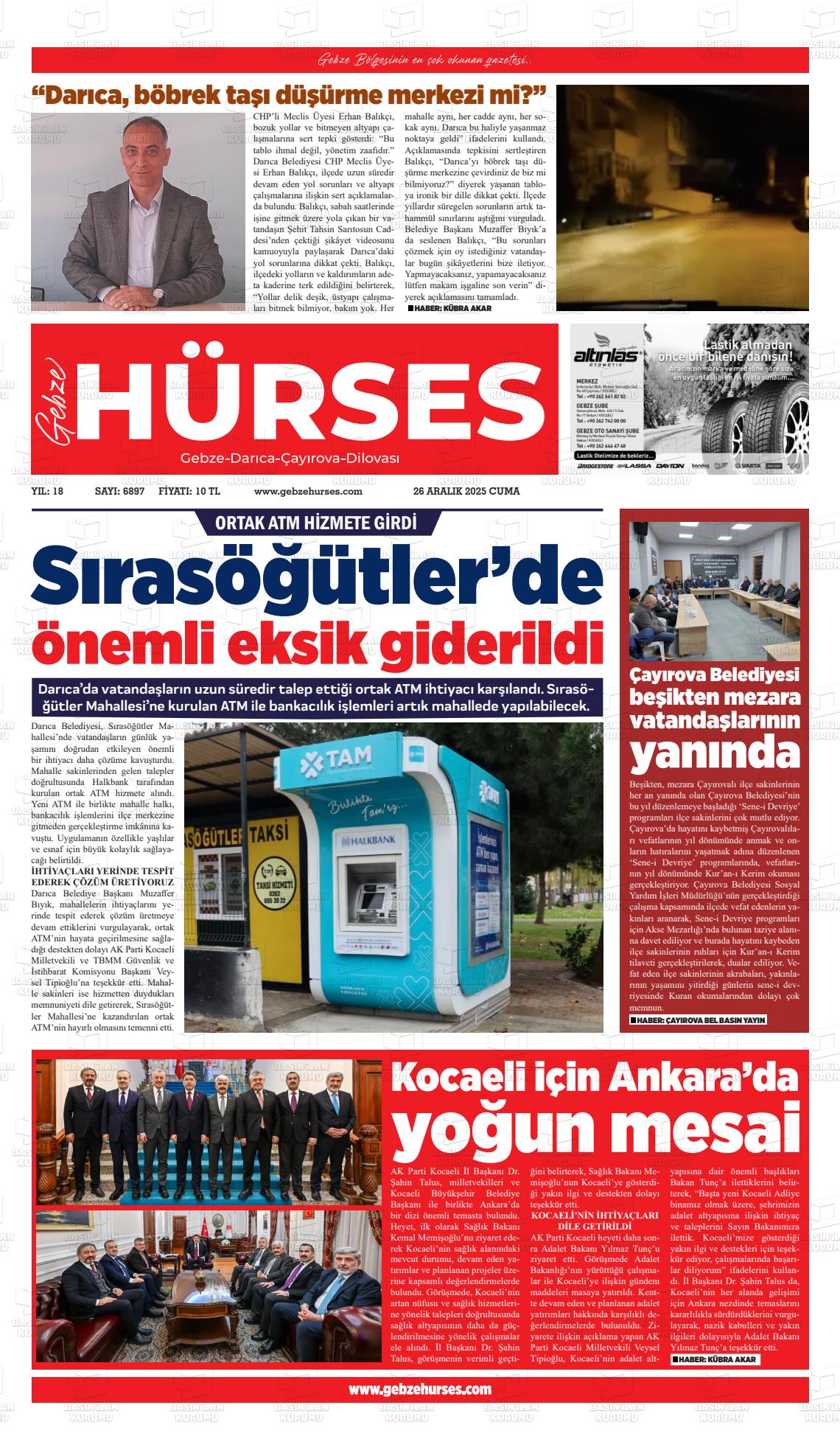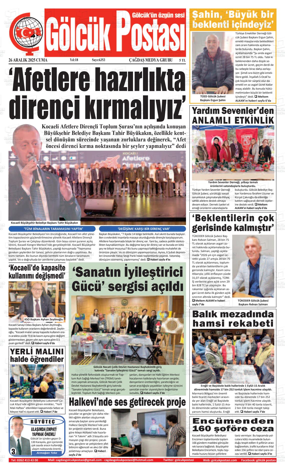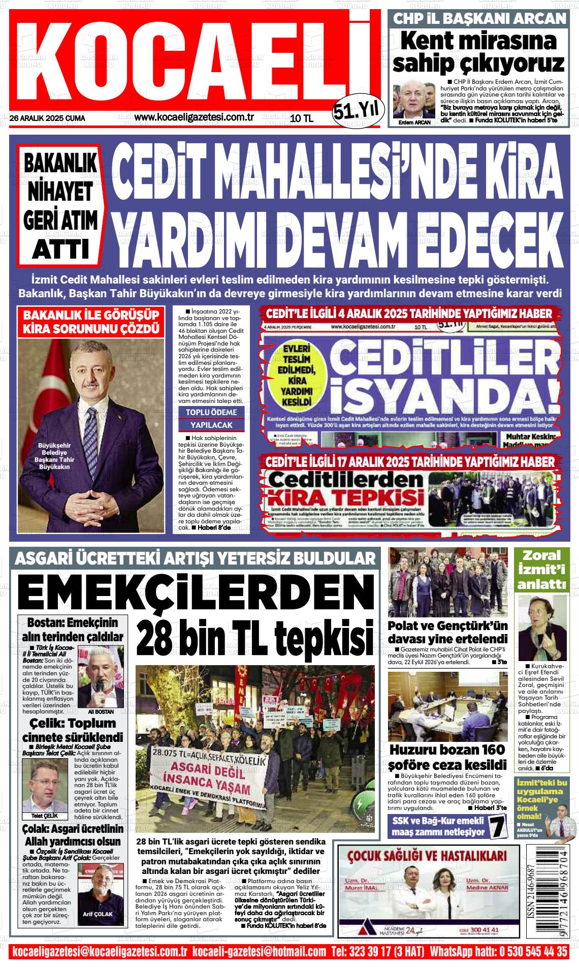 Kocaelİ Yerel Gazeteleri 26 Aralık 2025, Cuma Günü Manşeti