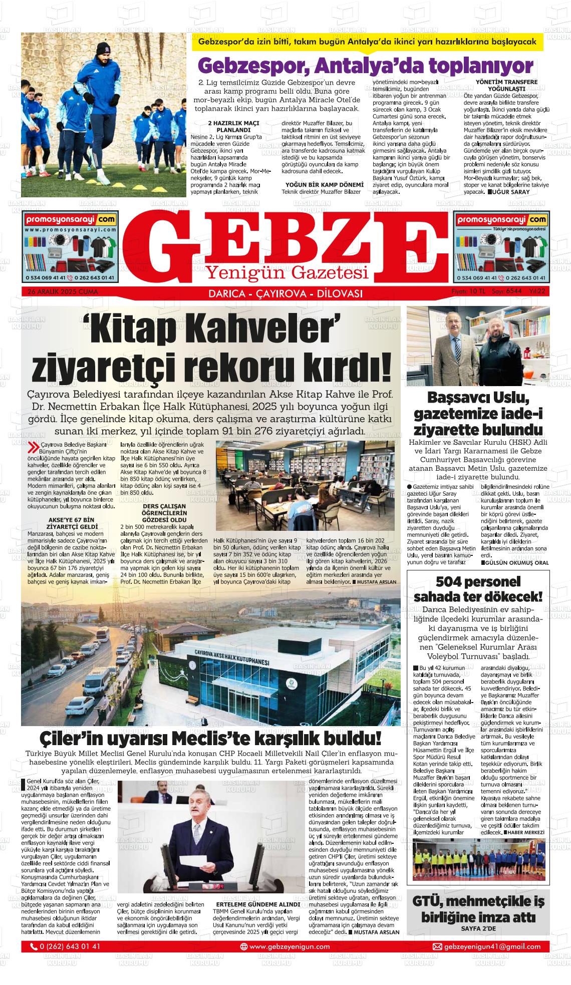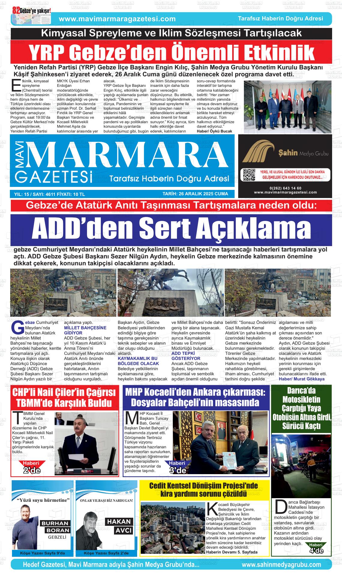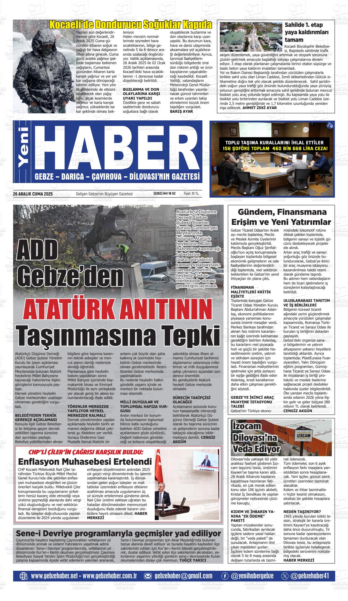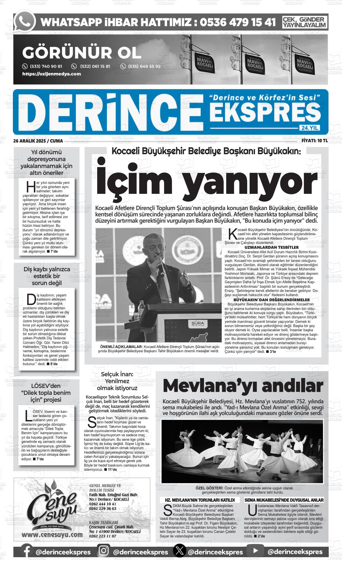 Kocaelİ Yerel Gazeteleri 26 Aralık 2025, Cuma Günü Manşeti