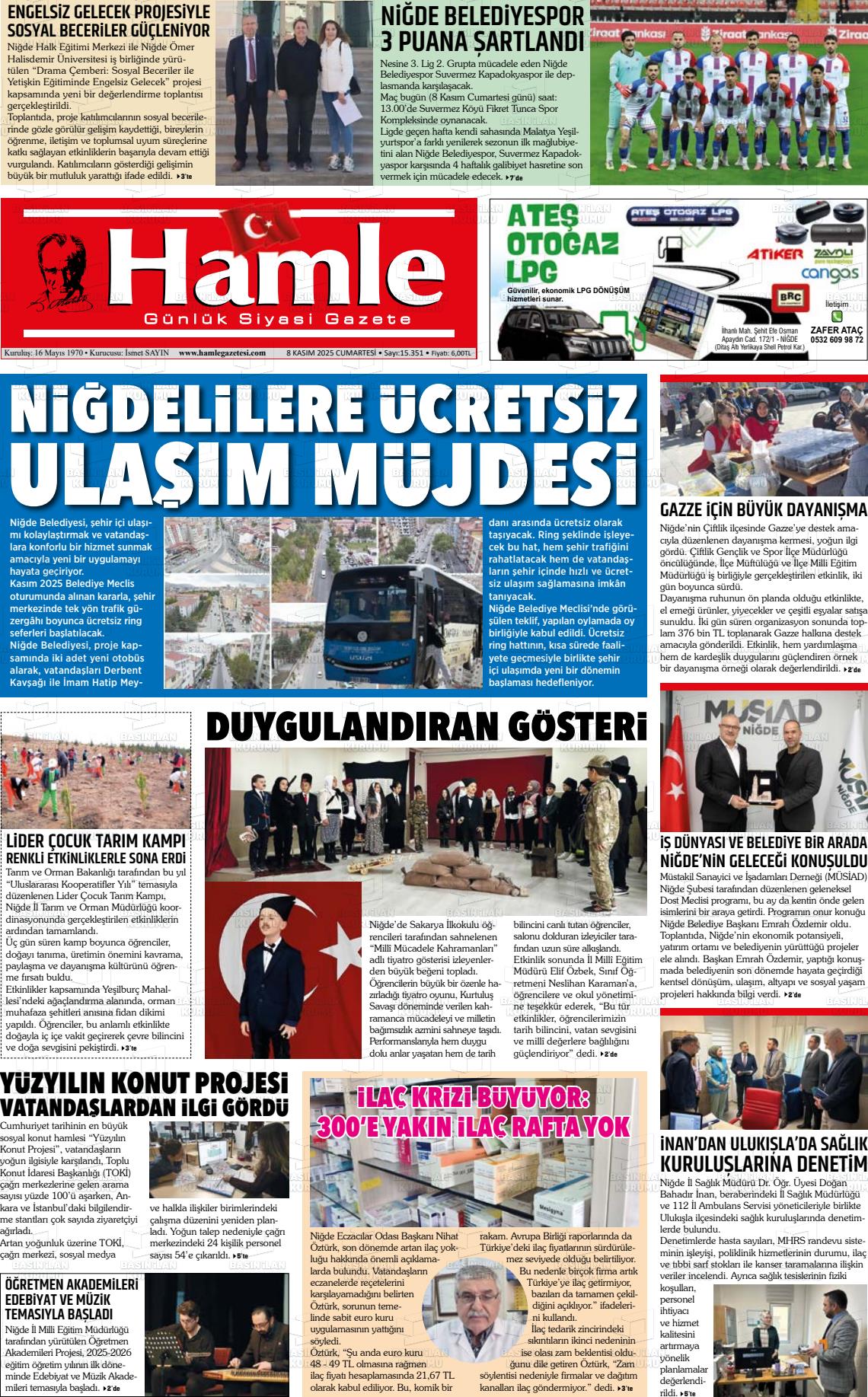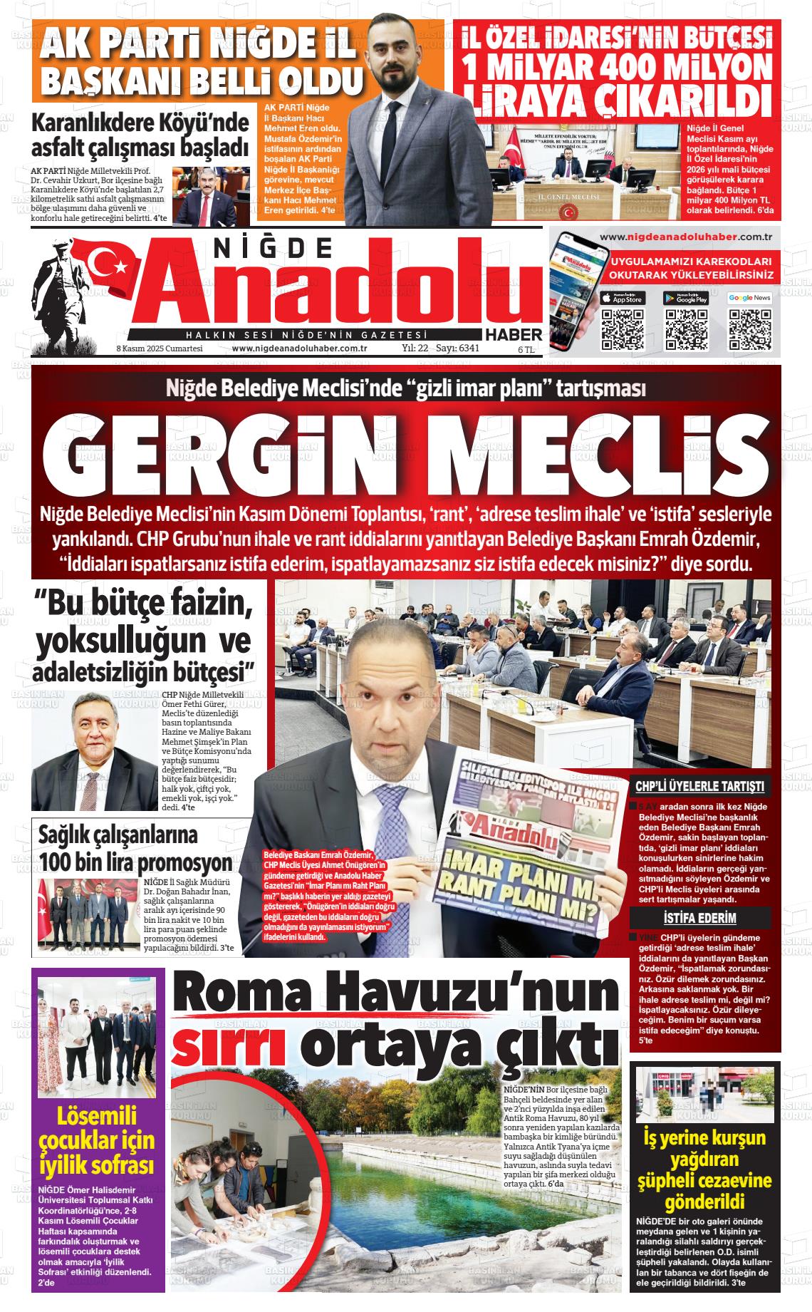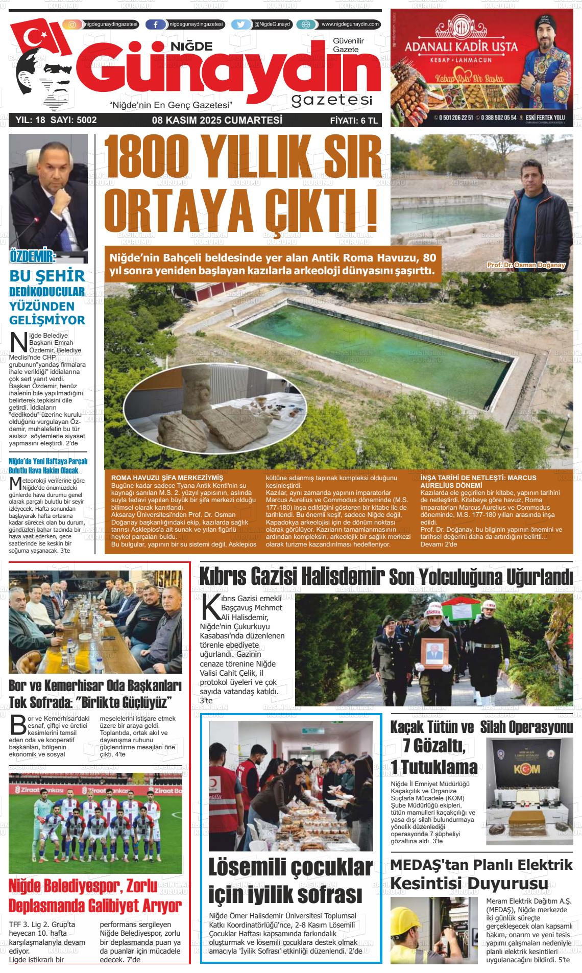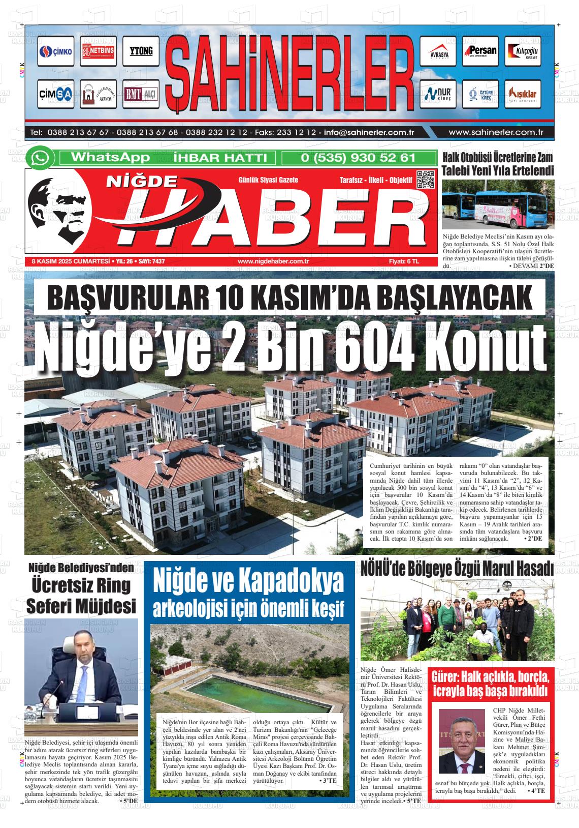 Nİğde Yerel Gazeteleri 27 Aralık 2025, Cumartesi Günü Manşeti