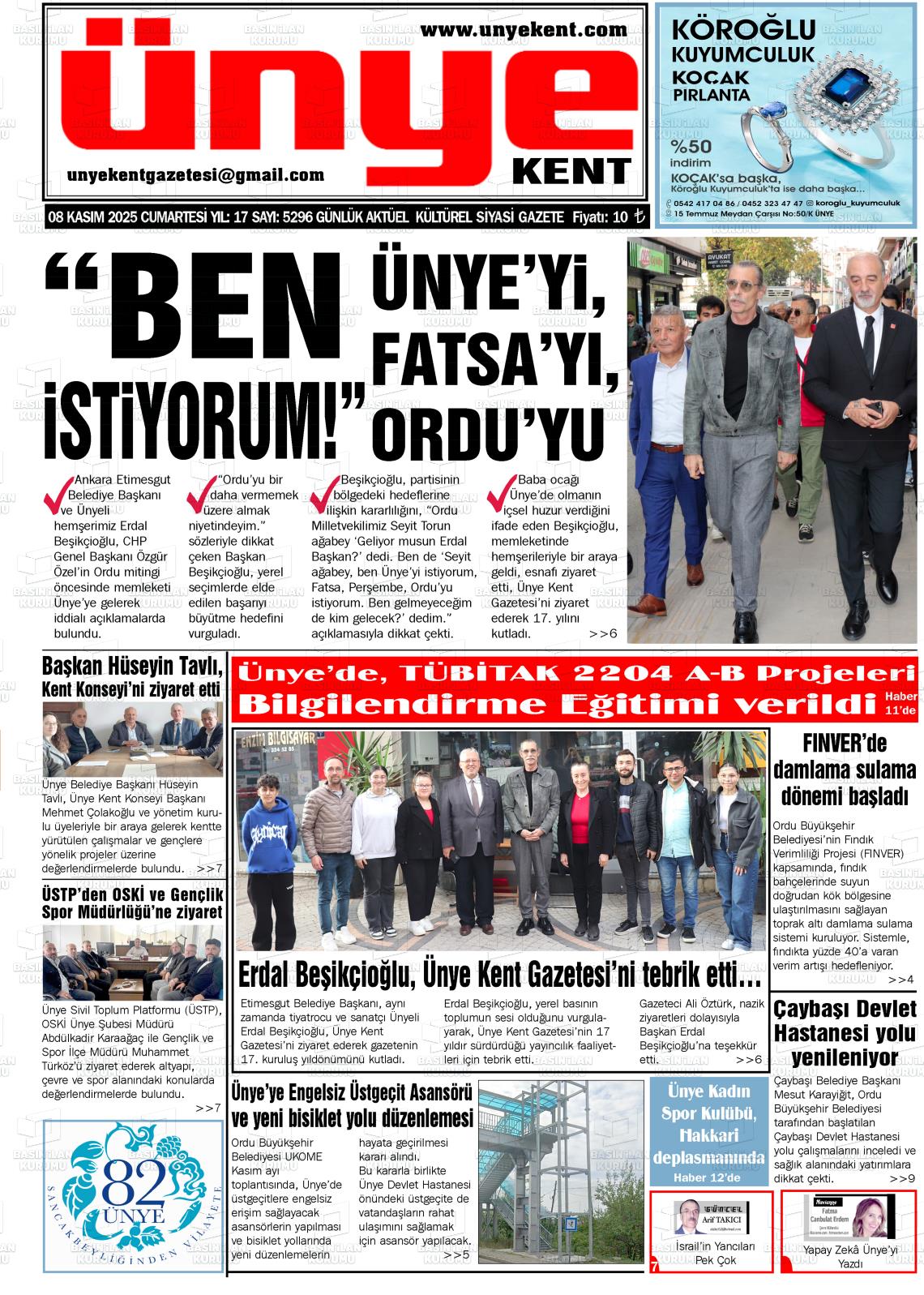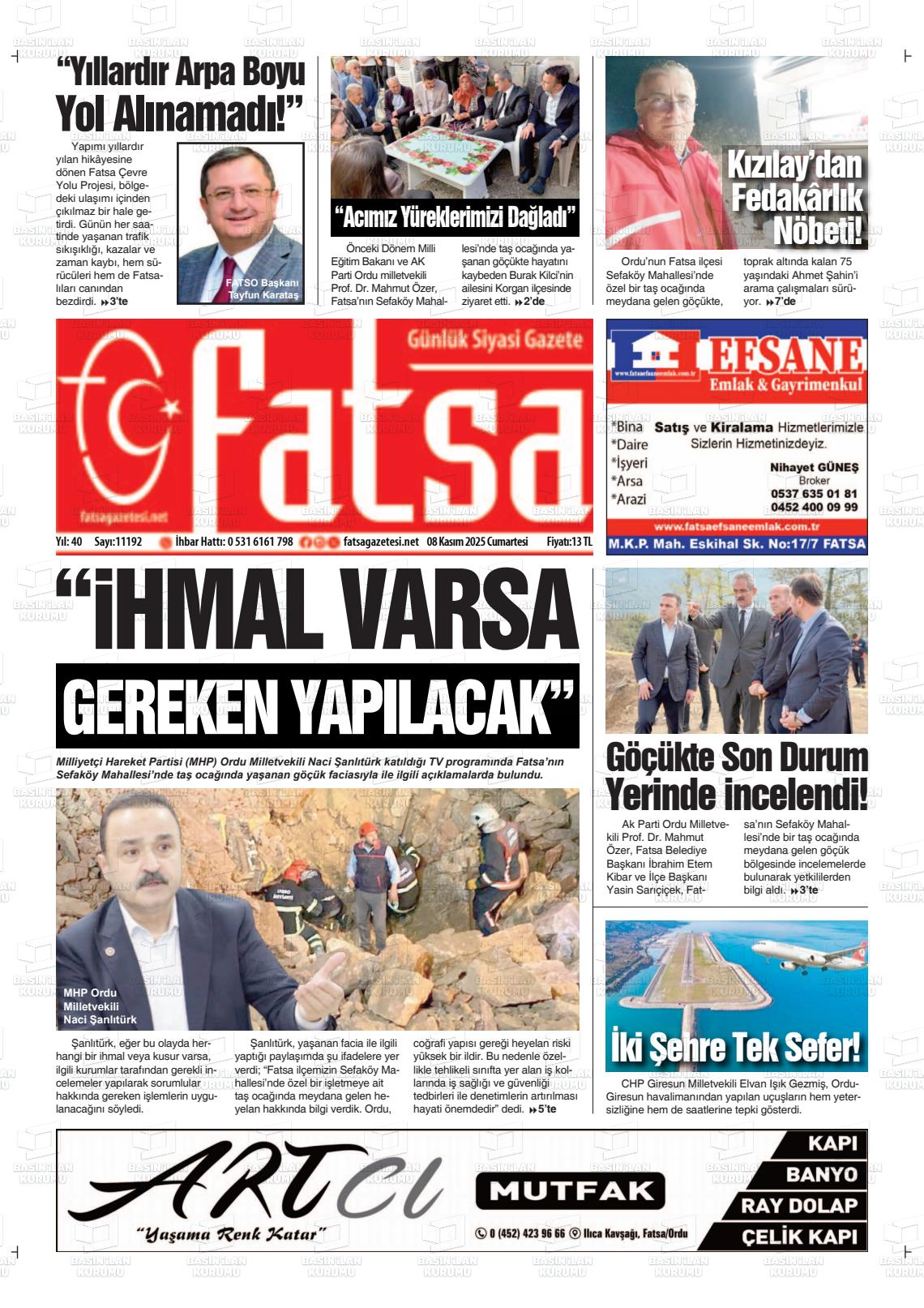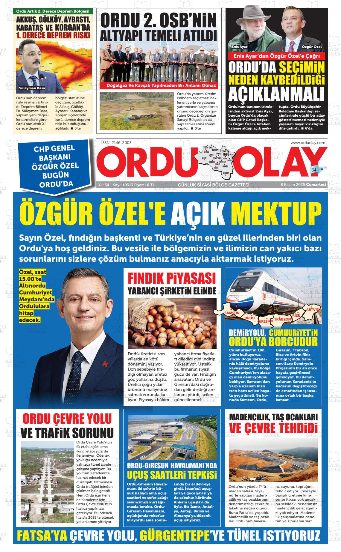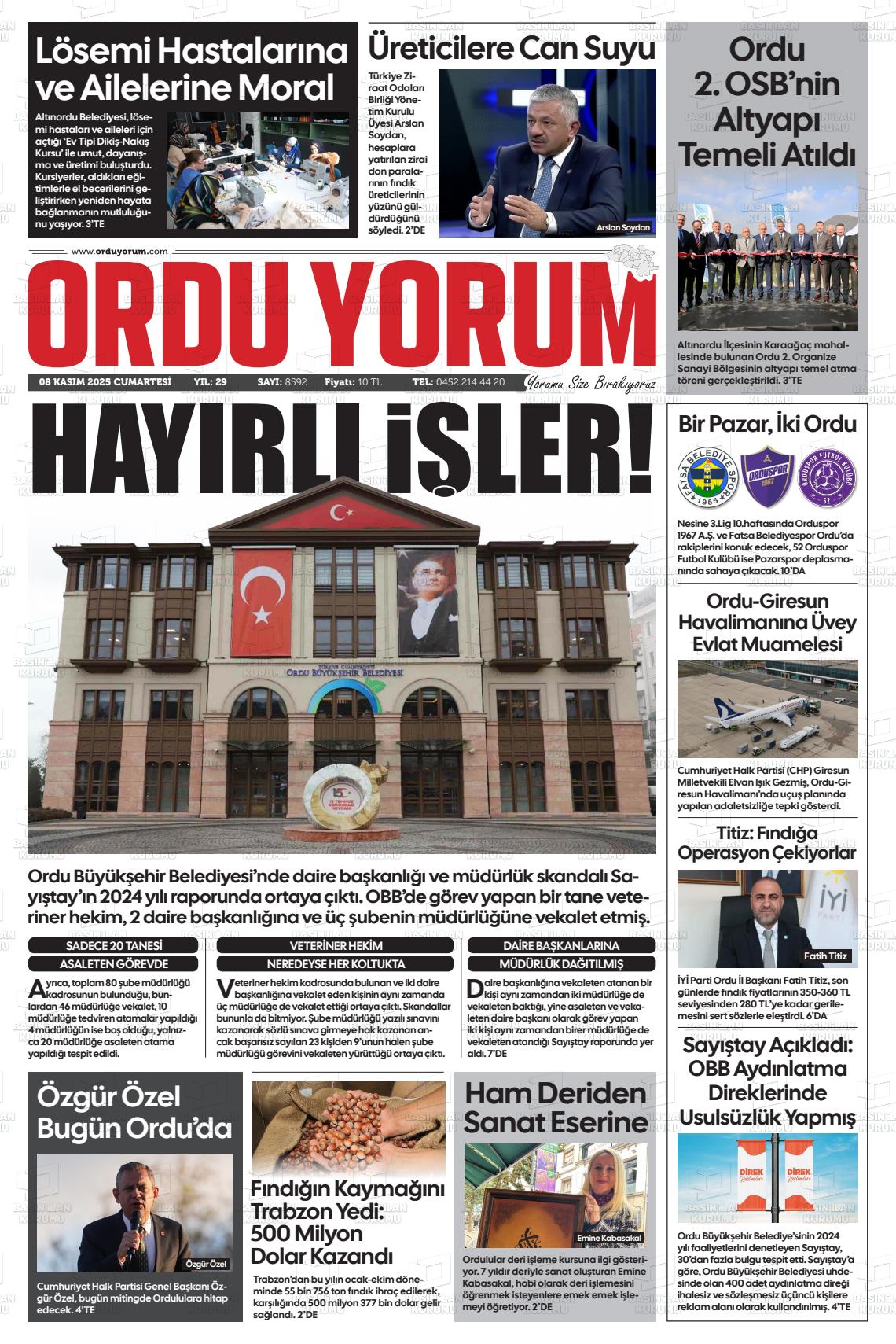 Ordu Yerel Gazeteleri 26 Aralık 2025, Cuma Günü Manşeti