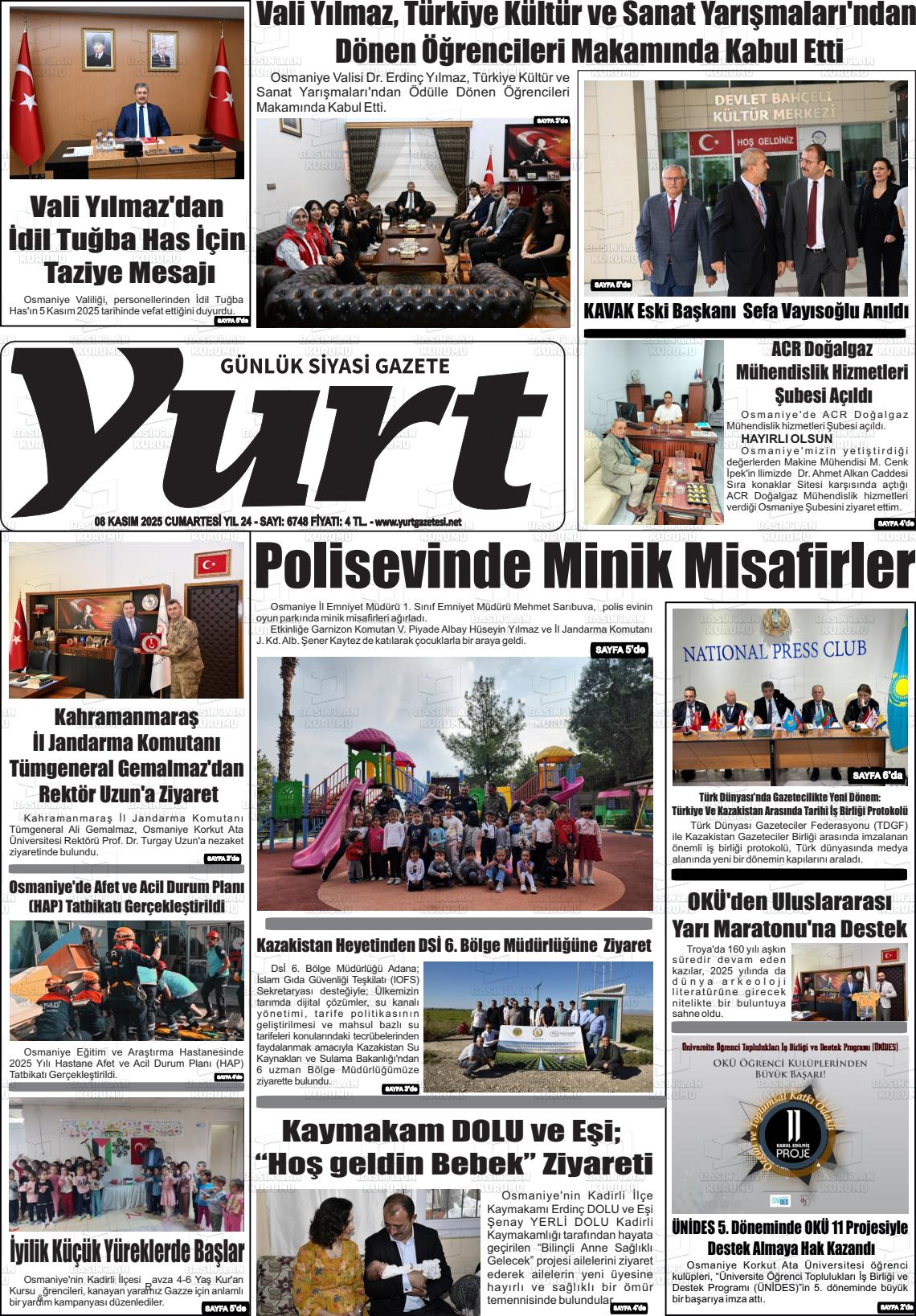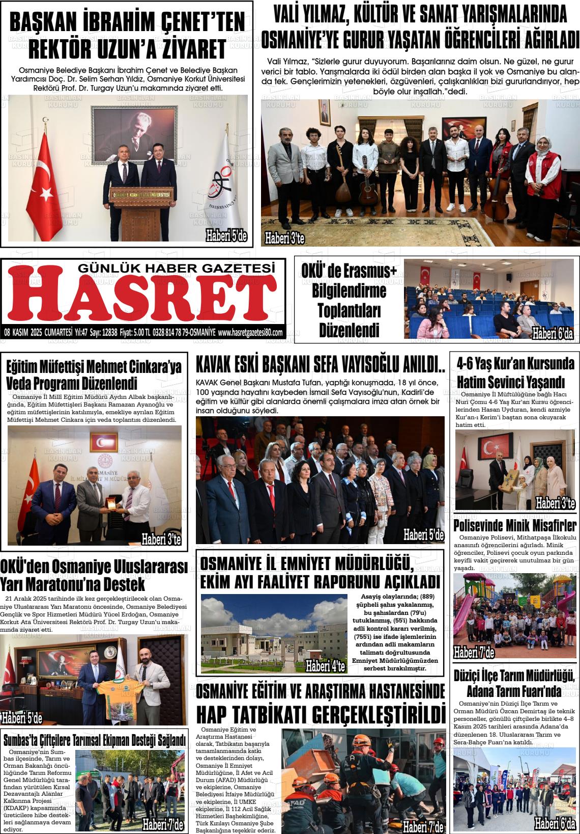 Osmanİye Yerel Gazeteleri 08 Kasım 2025, Cumartesi Günü Manşeti